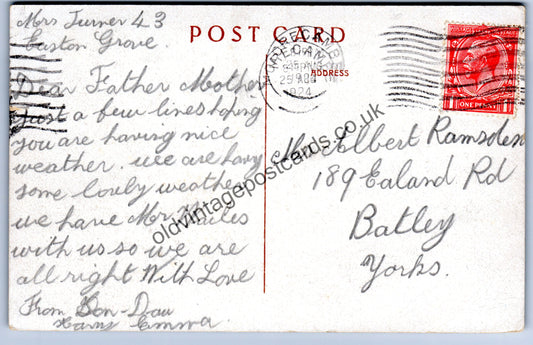 Morecambe East End 1924 old collectable postcard with street view and beach